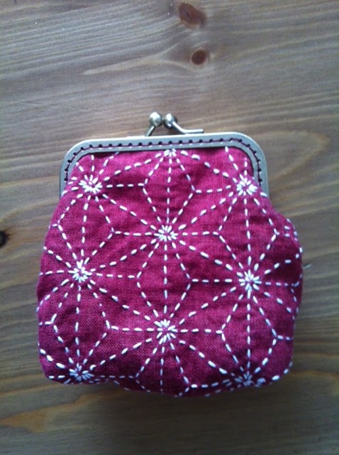 He terminado este monedero con la técnica de Sashiko, es un kit de Eva Gustems que compré en la pasada feria de Sitges, me llamó la atención porque no conocía esta técnica y además tenía ganas de probar a montar la boquilla de un monedero y con esto mataba dos pajaros de un tiro: técnica nueva y montaje de boquilla.